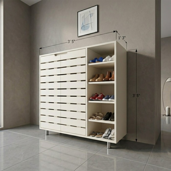 This modern shoe rack offers a combination of closed and open shelving, providing ample storage while keeping your footwear organized and easily accessible.