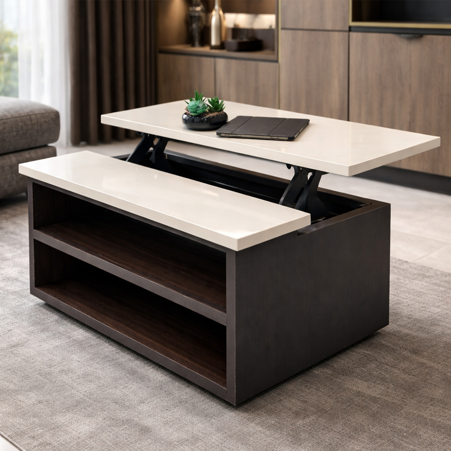 The Bumblebee Series Smart Coffee Table is designed to combine functionality, comfort, and modern aesthetics. This innovative table features a durable lift-top mechanism that allows the tabletop to rise effortlessly, transforming it into a comfortable workspace or dining surface.