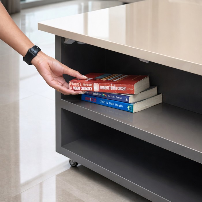 Built with a sturdy structure and premium engineered wood finish, the Bumblebee table is perfect for apartments, studios, and compact living spaces. The smooth caster wheels allow easy movement, making it a versatile addition to modern homes.