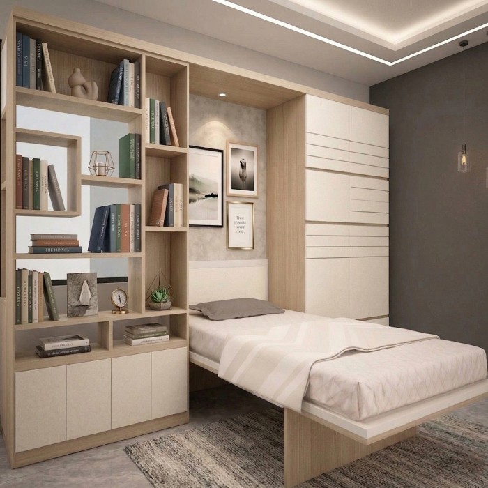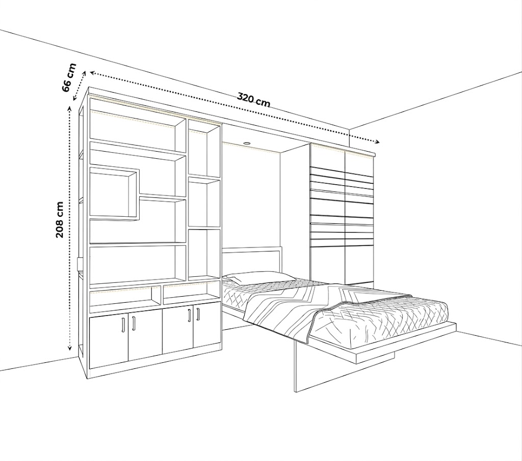The Standard wallbed is a one frame product which is made with our patented Spring Balance Lift Mechanism (SBLM).Working from home? Make your own workspace cum guest bedroom with the Portico that serves as a workstation with ample of book storage space and loft storage and a study table, slide it open to make a comfortable bed for guests to rest. No more messy rooms and no more compromising on space.