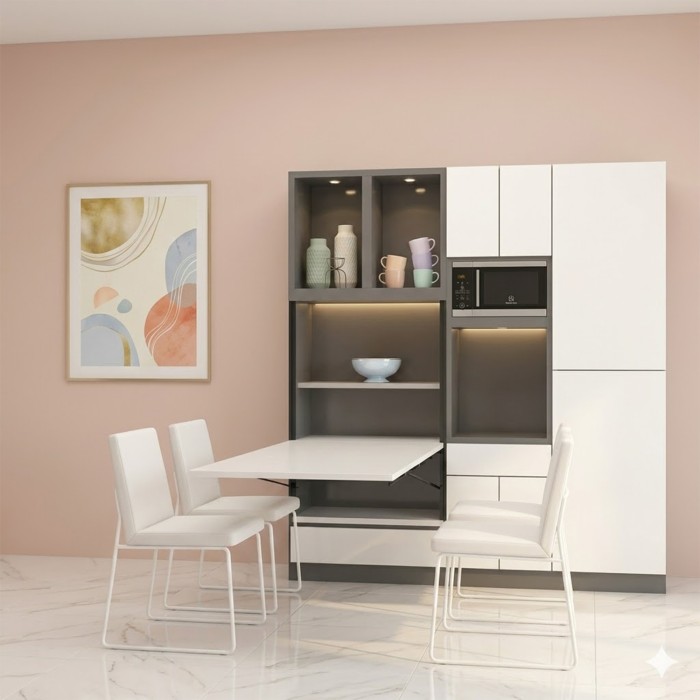 Enhance the look of your space with this compact dining table, that’s not just a space saver but also a compact and sleek crockery unit that expands to a full 4 seated dining table. Use it when required, the unit also has a pull-out for storage of other basic utilities. The pull-out is on the side so can be easily accessible when open too.
