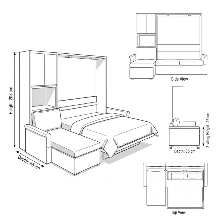 Operation: Remove loose throw pillows from the sofa before lowering the bed to ensure a flush fit and prevent mechanism strain.