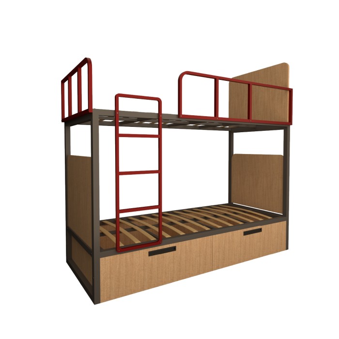This stylish bunk bed combines functionality with a modern touch, perfect for kids or compact spaces. Crafted with a sturdy metal frame and warm wooden panels, it ensures durability and aesthetic appeal. Featuring built-in ladders and under-bed storage drawers, it maximises space and convenience in any room.