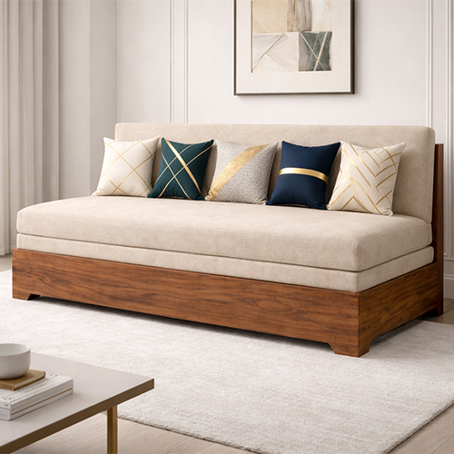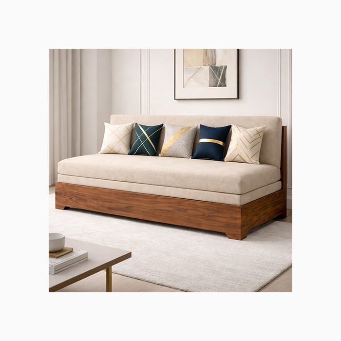 Crafted with a sturdy wooden base and premium fabric upholstery, the sofa offers durability, stability, and a sophisticated look that complements contemporary interiors. The wide seating area ensures maximum comfort for relaxing, while the high-density foam cushioning provides excellent support for both sitting and sleeping.