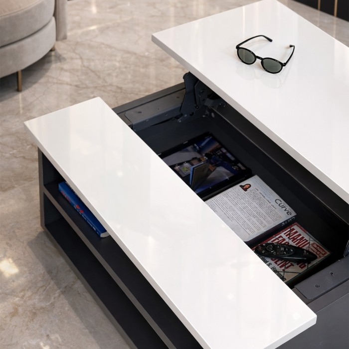 The Bumblebee Series Smart Coffee Table is designed to combine functionality, comfort, and modern aesthetics. This innovative table features a durable lift-top mechanism that allows the tabletop to rise effortlessly, transforming it into a comfortable workspace or dining surface.