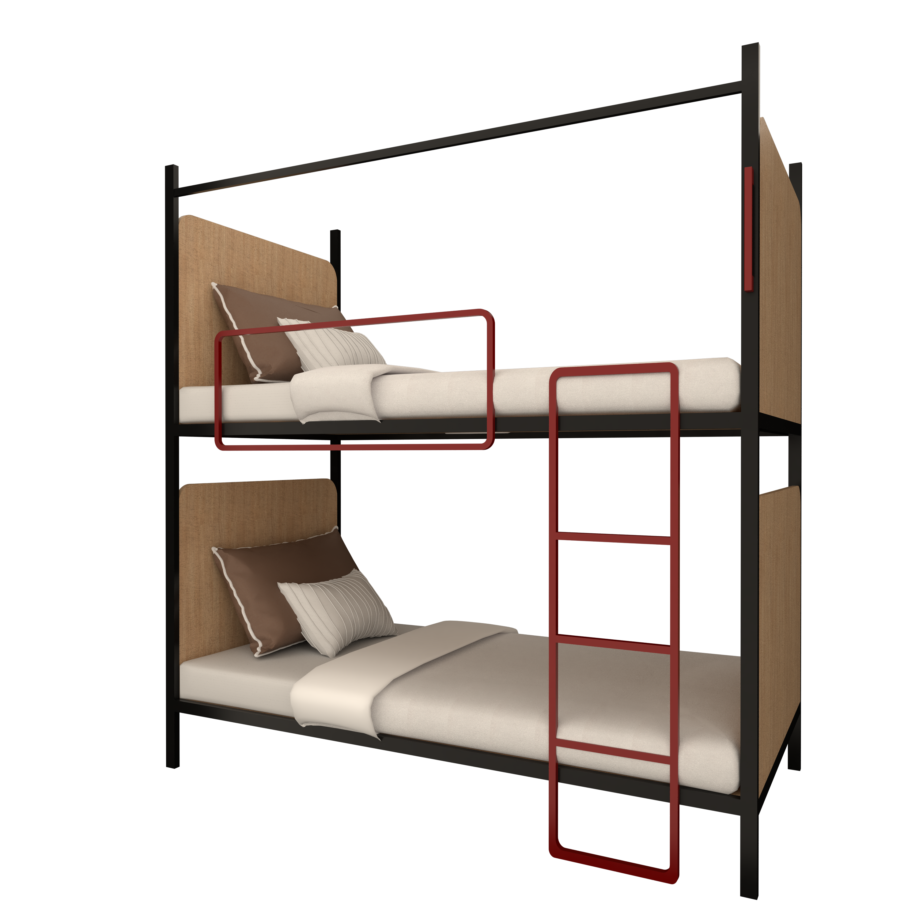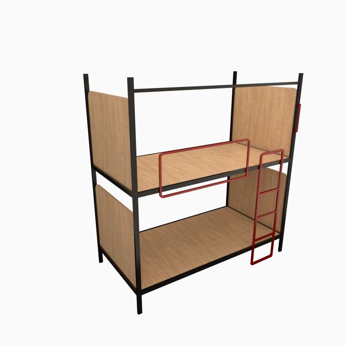- Space-saving two-tier bunk design