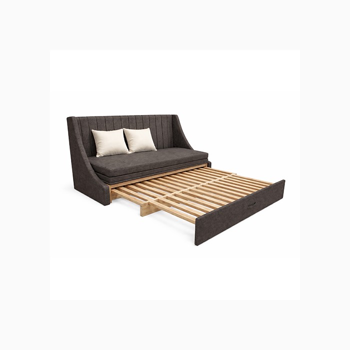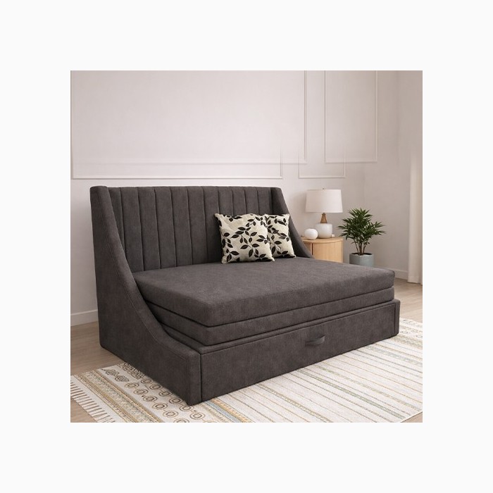 The smooth pull-out mechanism allows easy transformation from sofa to bed, making it a convenient option for accommodating overnight guests. With its sleek design and functional structure, the Kyle Sofa Cum Bed blends perfectly with modern interiors while providing practical functionality for everyday use.