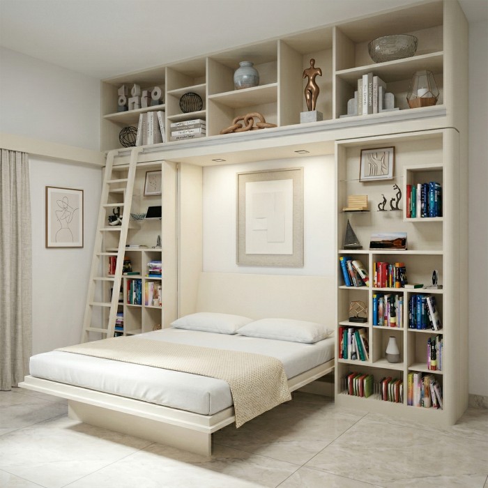 The Standard wallbed is a one frame product which is made with our patented Spring Balance Lift Mechanism (SBLM).Working from home? Make your own workspace cum guest bedroom with the Portico that serves as a workstation with ample of book storage space and loft storage and a study table, slide it open to make a comfortable bed for guests to rest. No more messy rooms and no more compromising on space.