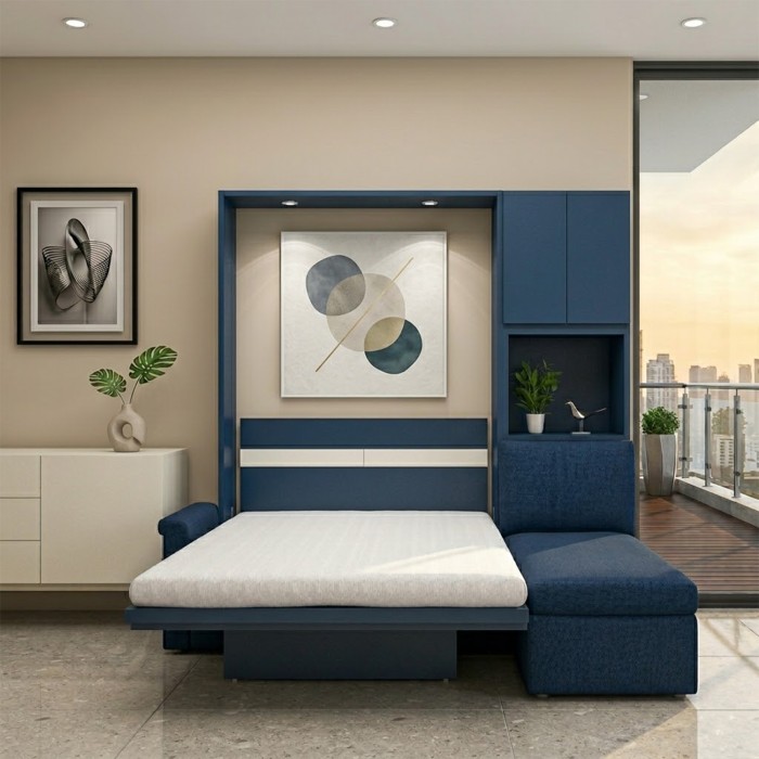 Operation: Remove loose throw pillows from the sofa before lowering the bed to ensure a flush fit and prevent mechanism strain.