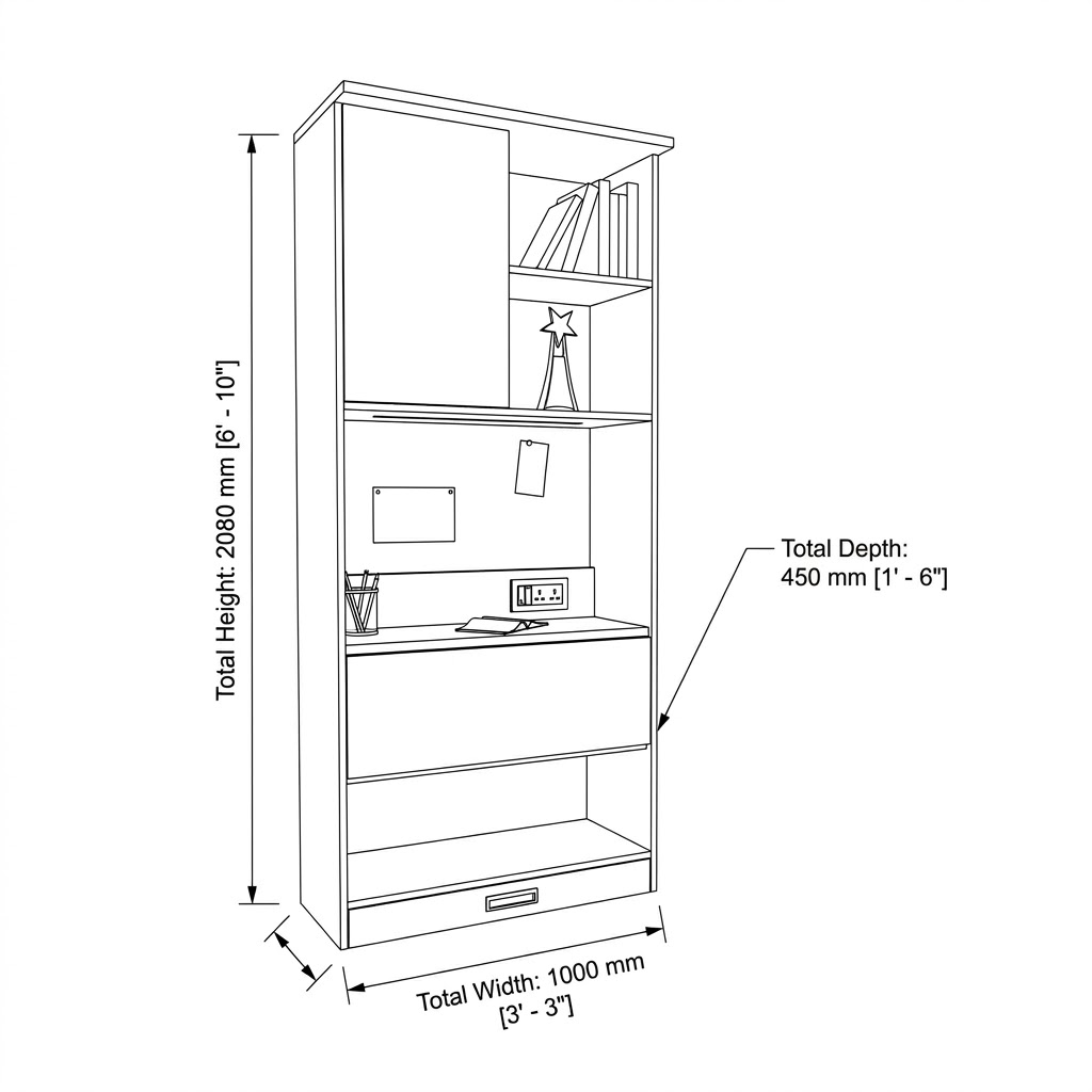 The Pluto Work-From-Home Unit is thoughtfully designed to create a highly functional and organized workspace within a compact footprint. Combining style with practicality, this unit is perfect for modern homes where space optimization is essential.